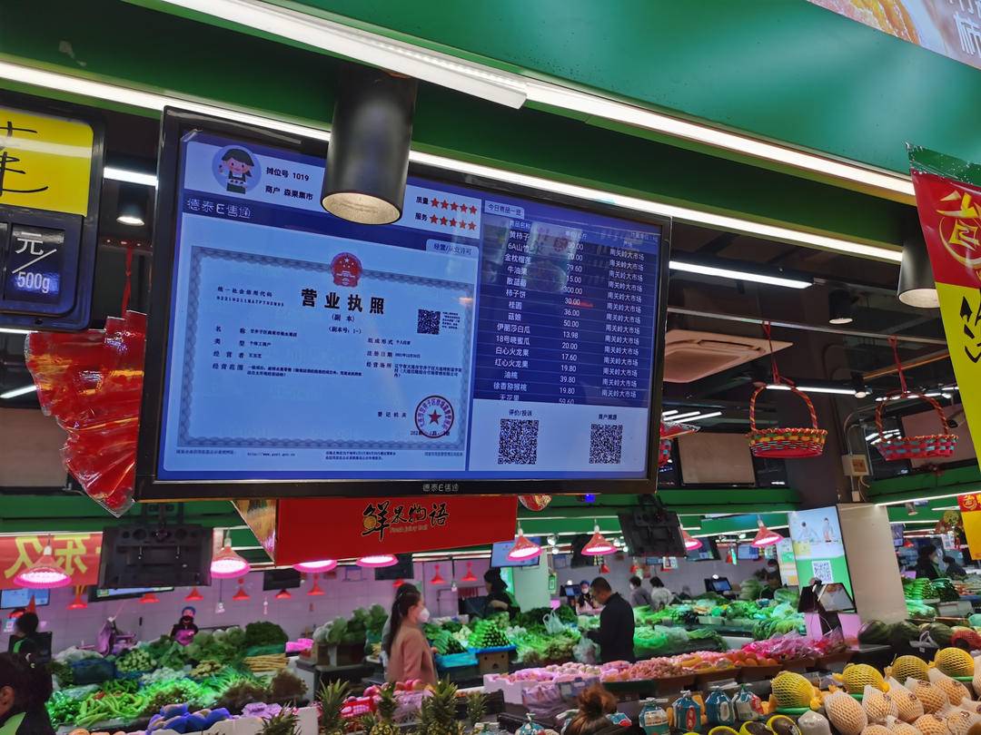 이 같은 개조를 거쳐 채소시장의 퀄리티는 물론 스마트한 기능 또한 전면 업그레이드 되었다. 시장 내 부스 위에는 영업허가증, 상품거래, 상품가격 및 상품검사 등 실시간 정보와 고객 피드백, 상품 소급 QR코드 등 관리 정보가 담긴 LED 스크린이 걸려져 있다.
