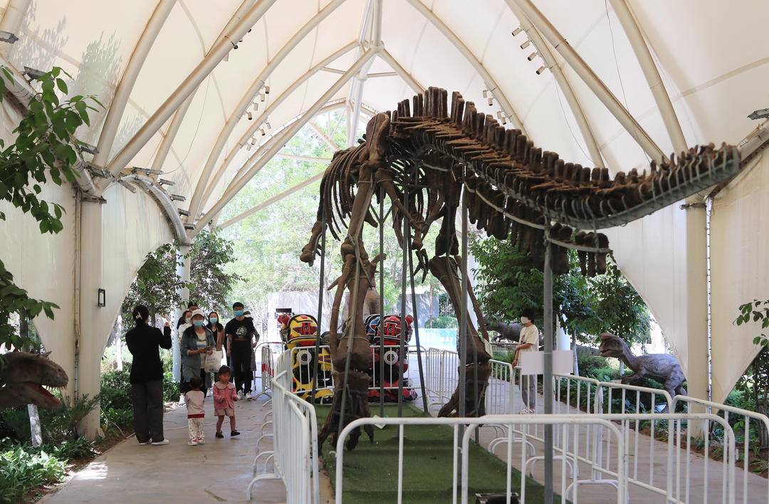 차오양시 화석골 풍경구는 어린이들이 좋아하는 공룡 모형을 수선하는 동시에 관광객들의 캠프 수요를 만족시키기 위해 분홍색 모래장과 캠프 구역을 새로 마련했다.