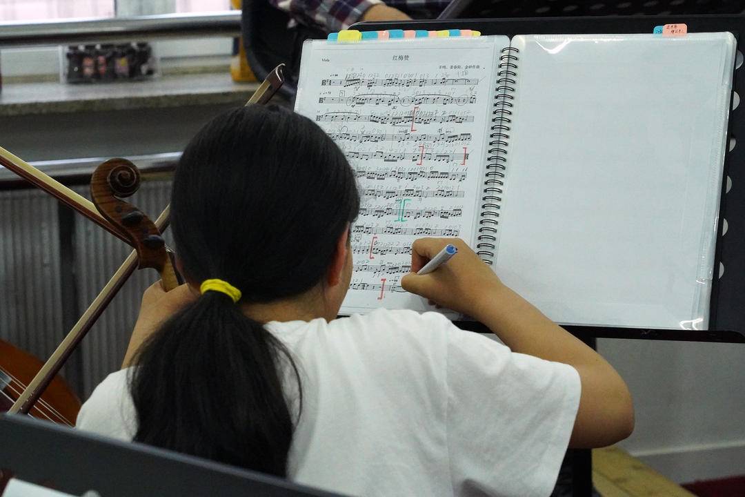 5월 27일, 선양시 허핑구 청소년교향악단 단원들은 선양시 허핑구 청소년궁에서 지휘 교사 진청하오를 따라 저녁 6시부터 9시까지 <훙싱산산(반짝이는 붉은 별)>, <캉캉> 등 악곡 합주를 연습했다.