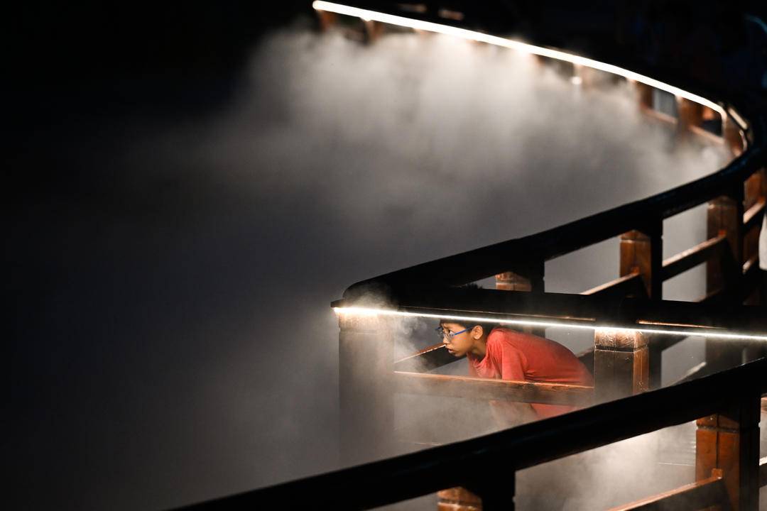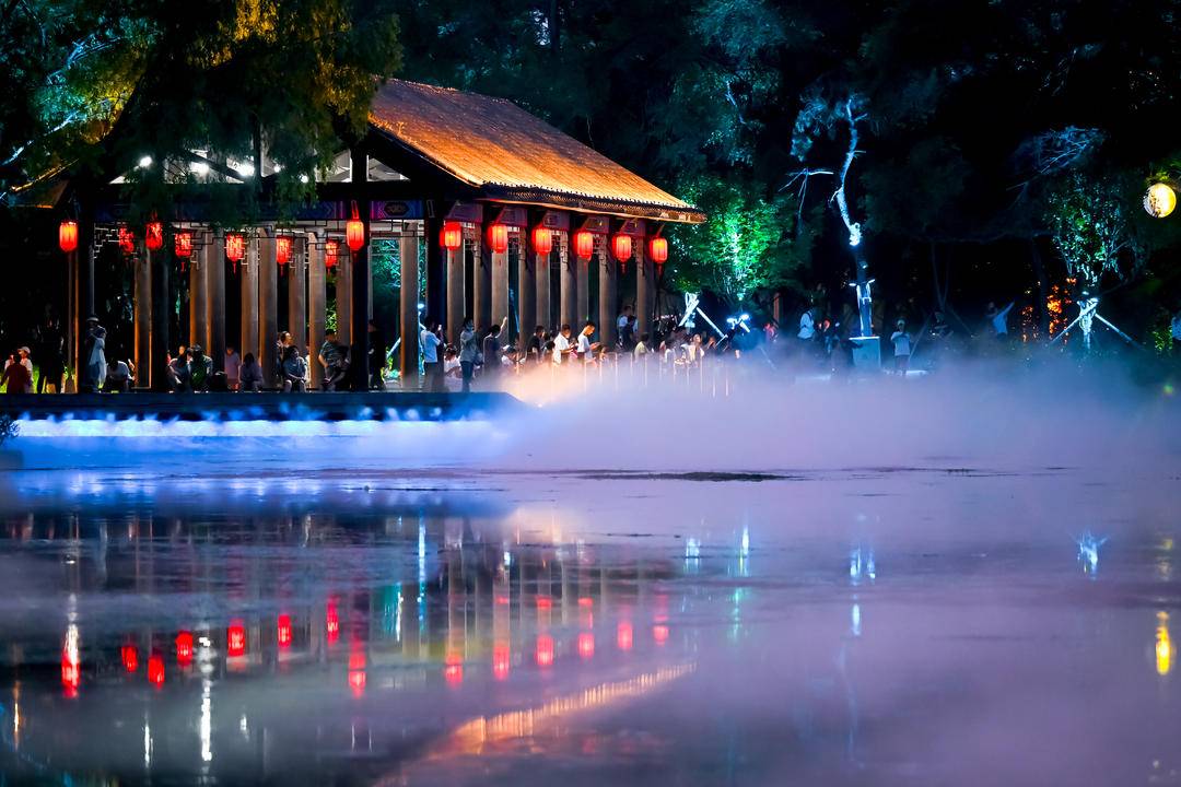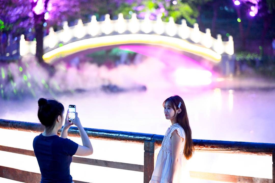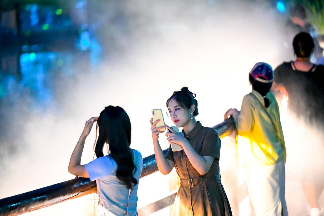 6월 17일 저녁, 선양시 따둥구 완취안공원을 찾은 시민들은 자욱한 안개 속에서 인증샷 찍기에 빠빴다. 여름철 완취안공원의 몽환적인 야간 산책길은 현재 선양시의 새로운 핫 플레이스로 꼽히고 있다.