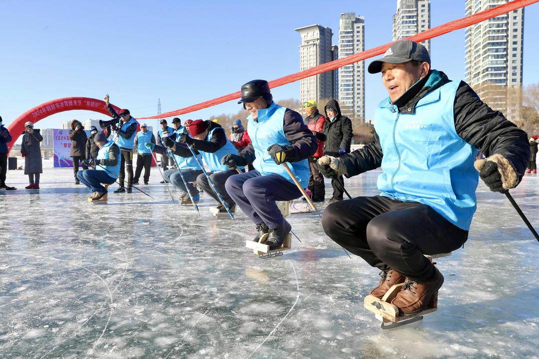 1월 7일, 차오양시 빙설운동 축제의 일환인 ‘단투이뤼(单腿驢)’ 취미 경기가 따링허풍경구에서 열렸다.