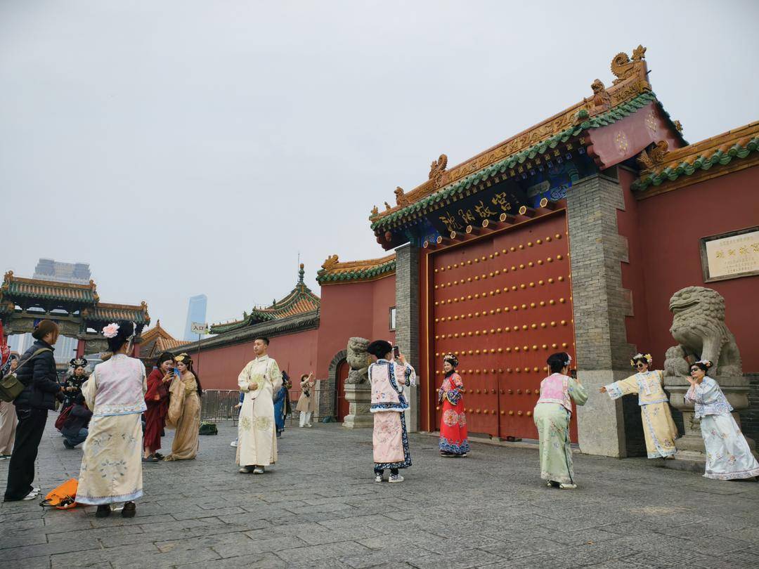 최근 선양 고궁에서 많은 관광객들이 전통 의상을 입고 붉은 담장과 노란 기와 사이를 거닐며 사진 촬영에 한창이다.