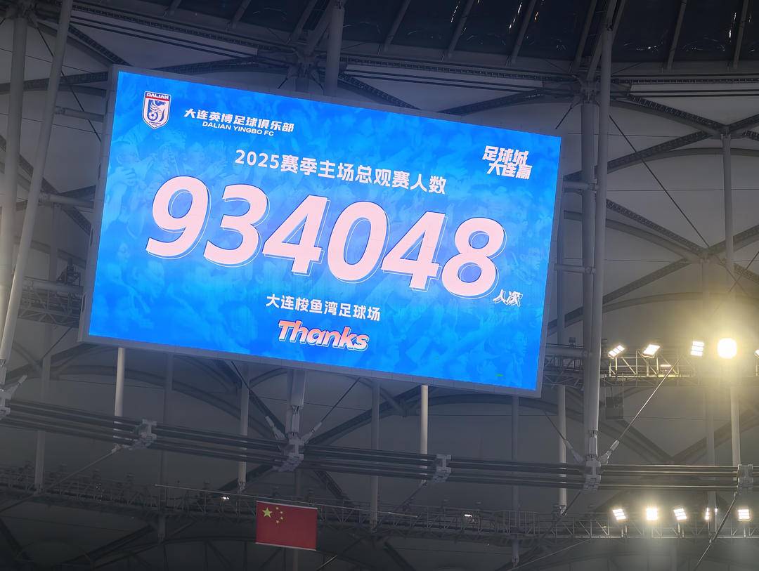 2025시즌 중국 슈퍼리그 최종전이었던 이날, 다롄잉보하이파팀은 상하이하이강팀과 대결을 펼쳤다. 총 6만 2330명의 축구팬들이 경기장을 찾아 뜨거운 응원을 보냈다. 이 숫자는 다롄잉보하이파의 홈경기 단일 관중 기록을 갱신한 동시에, 2025시즌 누적 홈경기 관중 수를 93만 4048명으로 끌어올려 전 세계 17위에 이름을 올리게 했다. 홈경기 평균 관중 수는 5만 7978명으로 아시아 1위를 기록했다.
