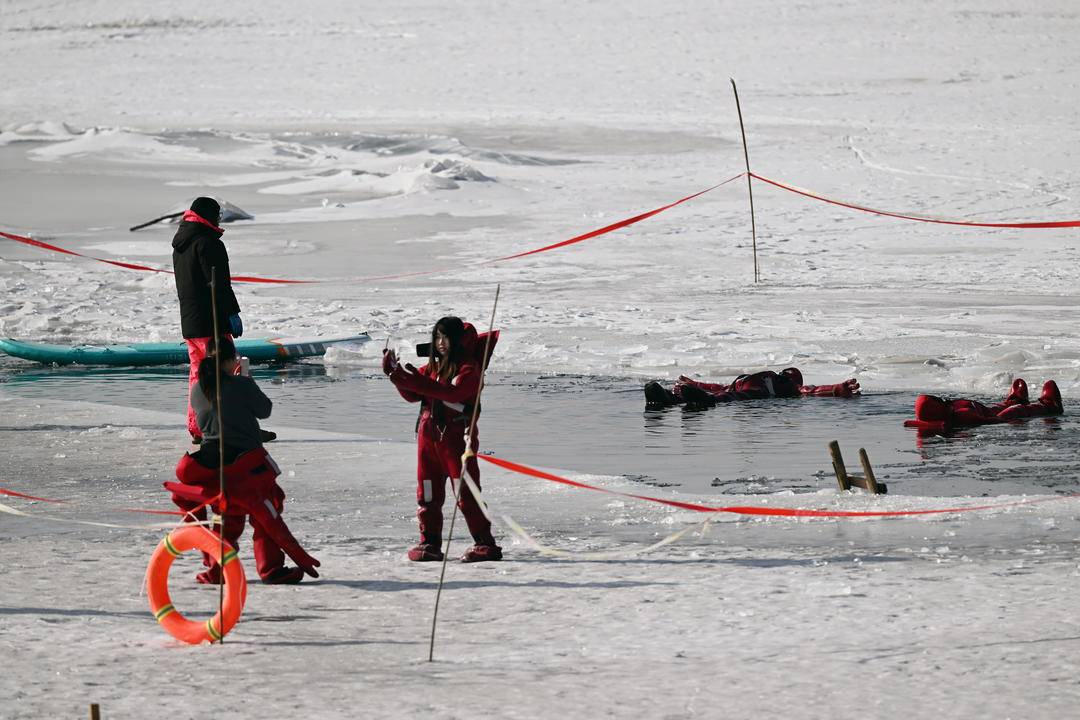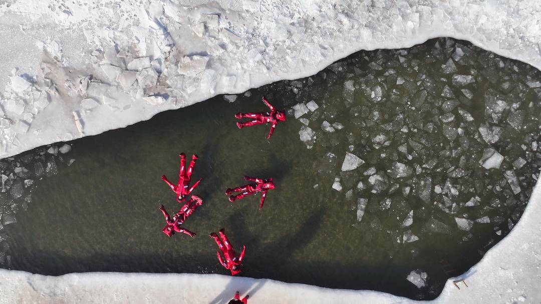 최근, 선양 선수이완공원에서 젊은이들이 빨간 보온복을 입고 '아이스 플로팅'을 즐기고 있다. 삼삼오오 강 위에 떠 있는 이들이 모습이 마치 '샤오룽샤' 와도 같아, 겨울 풍경 속 독특한 볼거리를 연출했다.