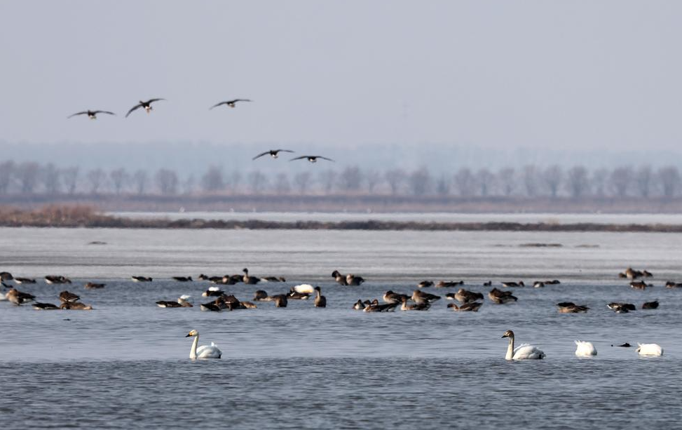 최근 기온이 올라가면서 랴오닝성 선양시 캉핑현에 위치한 워룽후에 많은 철새가 날아와 시민과 관광객의 발길을 끌어모으고 있다.