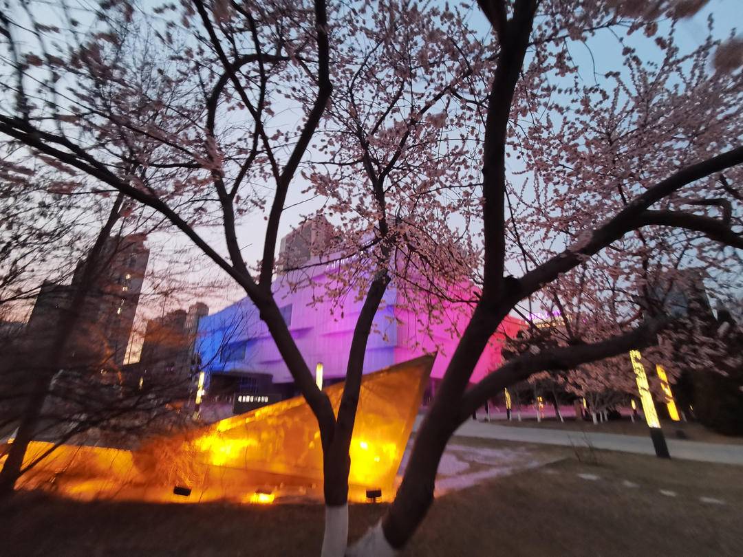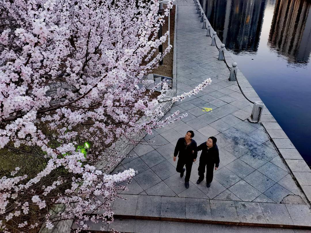 강가를 따라 걷다 보면 복사꽃이 바람에 살랑이고 노을빛까지 더해져 따뜻한 금빛으로 물들었다. 밤이 되면 대극장의 네온사인이 화려한 꽃과 어우러져 봄밤의 낭만을 한껏 자아냈다. 많은 시민이 가족, 친구와 함께 꽃구경을 나와 카메라에 아름다운 순간을 담으며 봄날의 생기와 여유를 만끽했다.